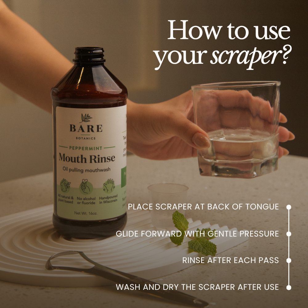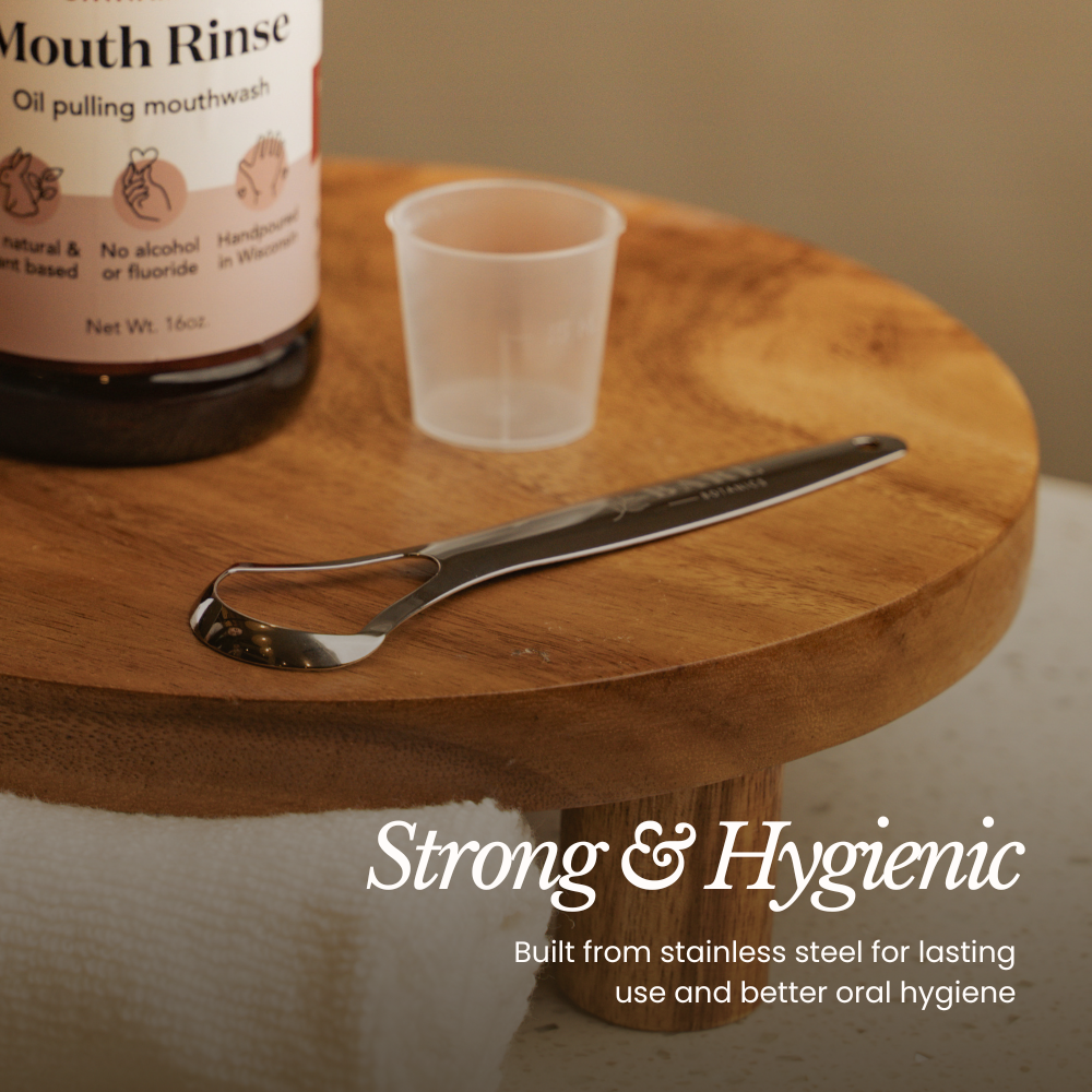 Pair this tongue scraper with our oil pulling mouth rinse