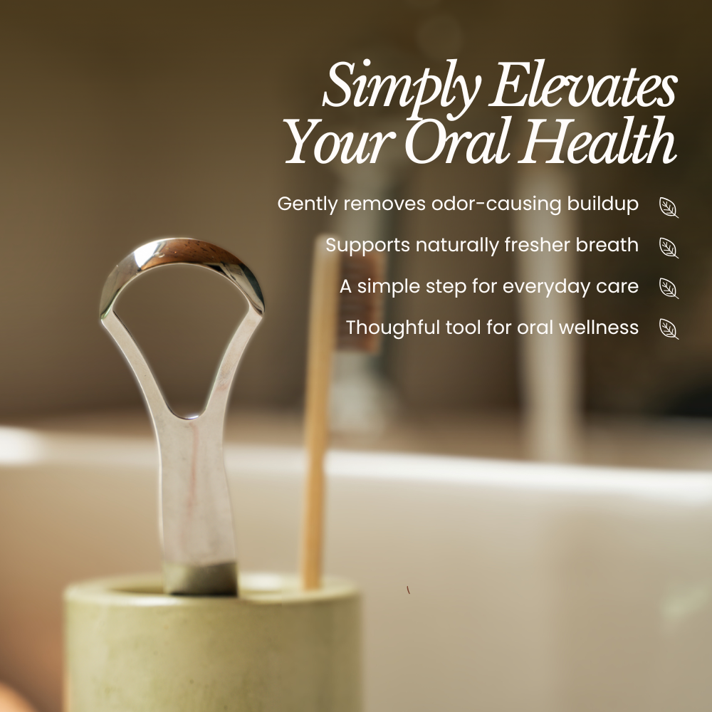 Elevate your daily oral care with our stainless steel tongue scraper, crafted from durable, rust-resistant stainless steel. It gently removes buildup to support a fresher, cleaner mouthfeel.