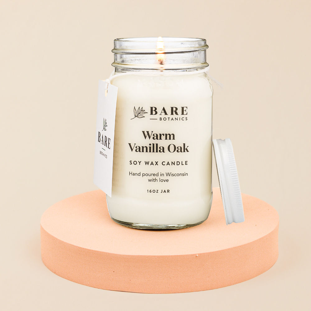Made purely with soy wax, plant-based fragrance oils, and cotton wick
