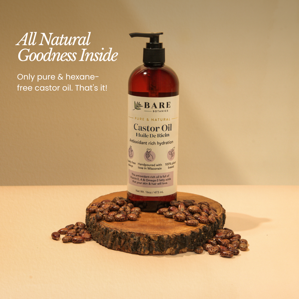 Our 100% pure, hexane-free castor oil is naturally rich in fatty acids that deeply condition and nourish. With its thick, protective texture, this versatile oil is great for hydrating skin and having healthy-looking hair, brows, and lashes.