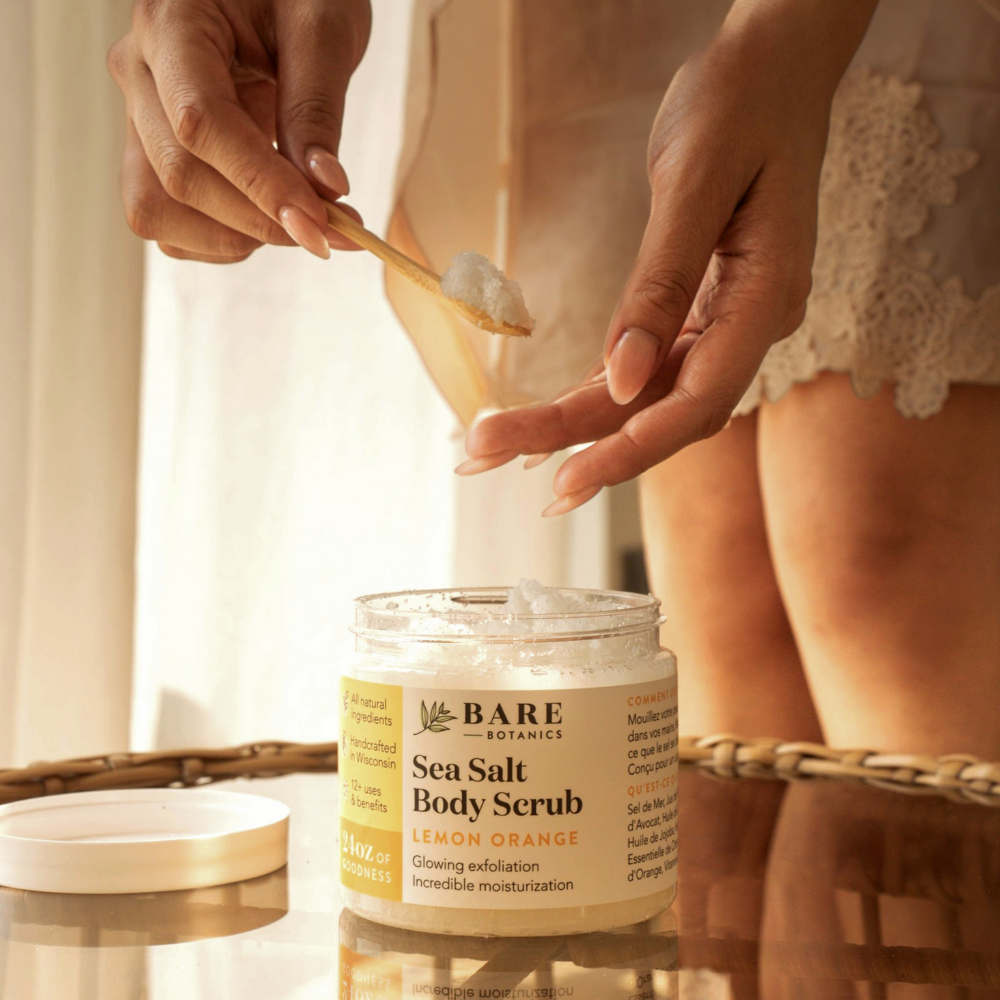 Each jar creates a pure and uplifting ritual that leaves skin smooth, soft, and radiant. Fine and ultra-fine sea salts gently exfoliate while nourishing oils and butters, including jojoba, argan, shea, and aloe vera, deeply hydrate the skin. We keep it honest with no fillers, no dyes, and no synthetic fragrances.