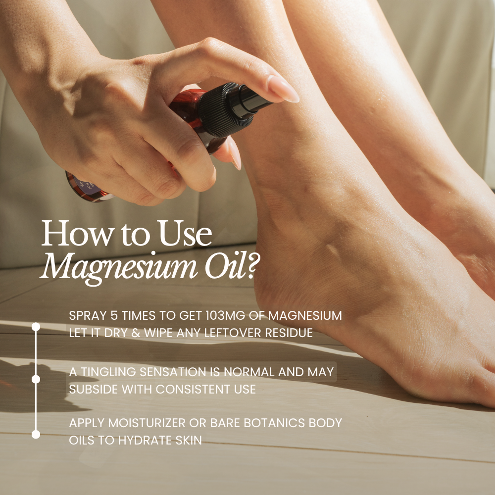Use it after a shower or before bed to refresh skin. We recommend five sprays at the bottom of the feet for faster absorption.